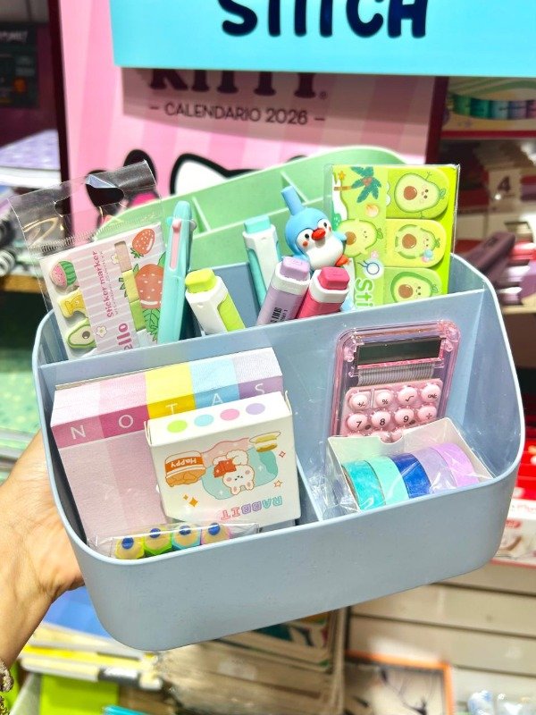 Posee 5 compartimientos para organizar todos tus materiales y almacenar marcadores, bolígrafos, washi tapes, abrochadoras, y todo lo que quieras!